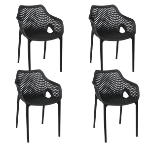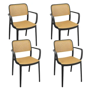 Set 4 Sillas Terraza Plástica Cairo con Apoyabrazos Negra