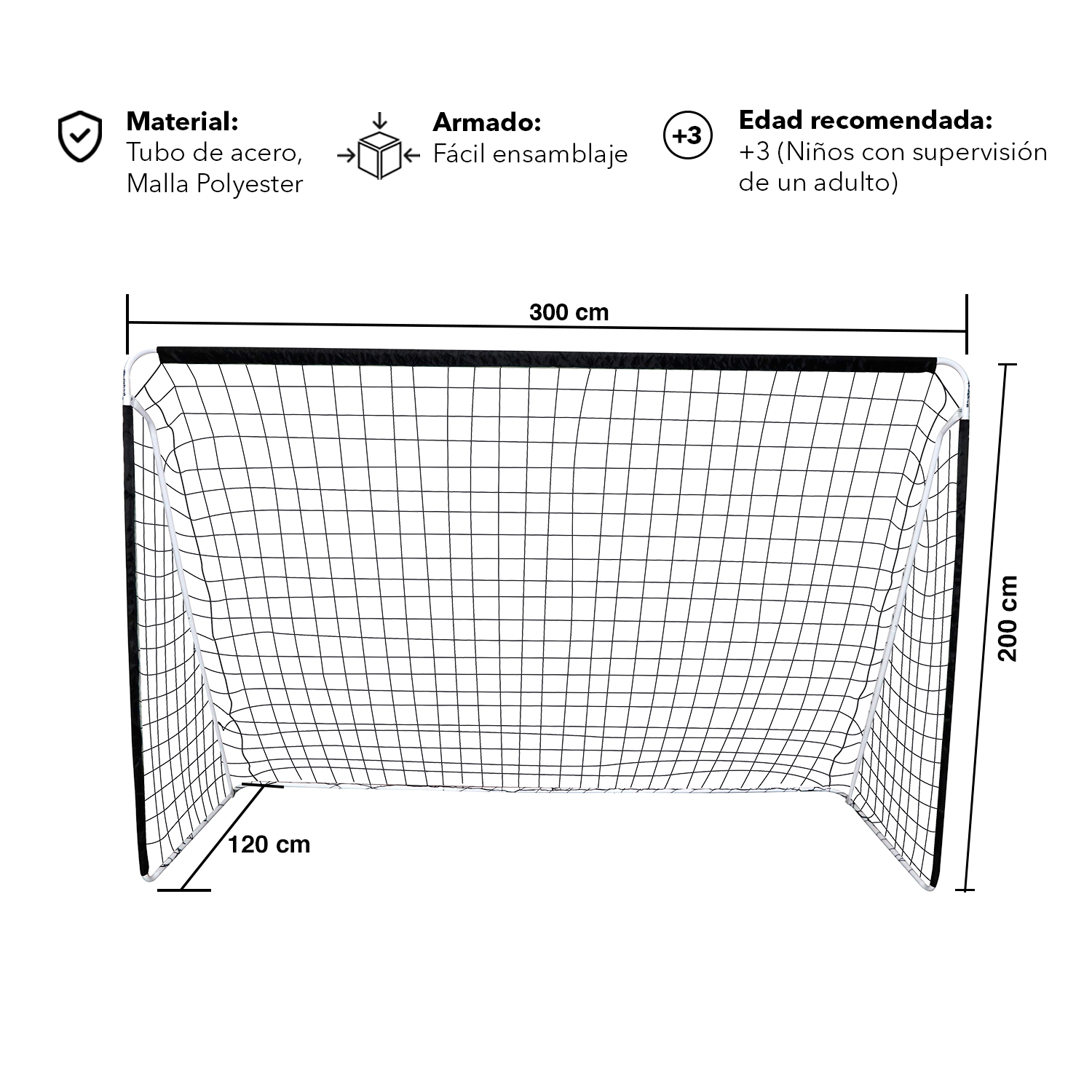 Con dimensiones de 300×200 cm, este arco es perfecto para simular un entorno de juego real, ofreciendo un amplio espacio para tiros precisos y entrenamientos intensivos. A pesar de su tamaño, el arco es fácil de ensamblar y transportar, lo que te permite llevar la diversión a donde quiera que vayas.