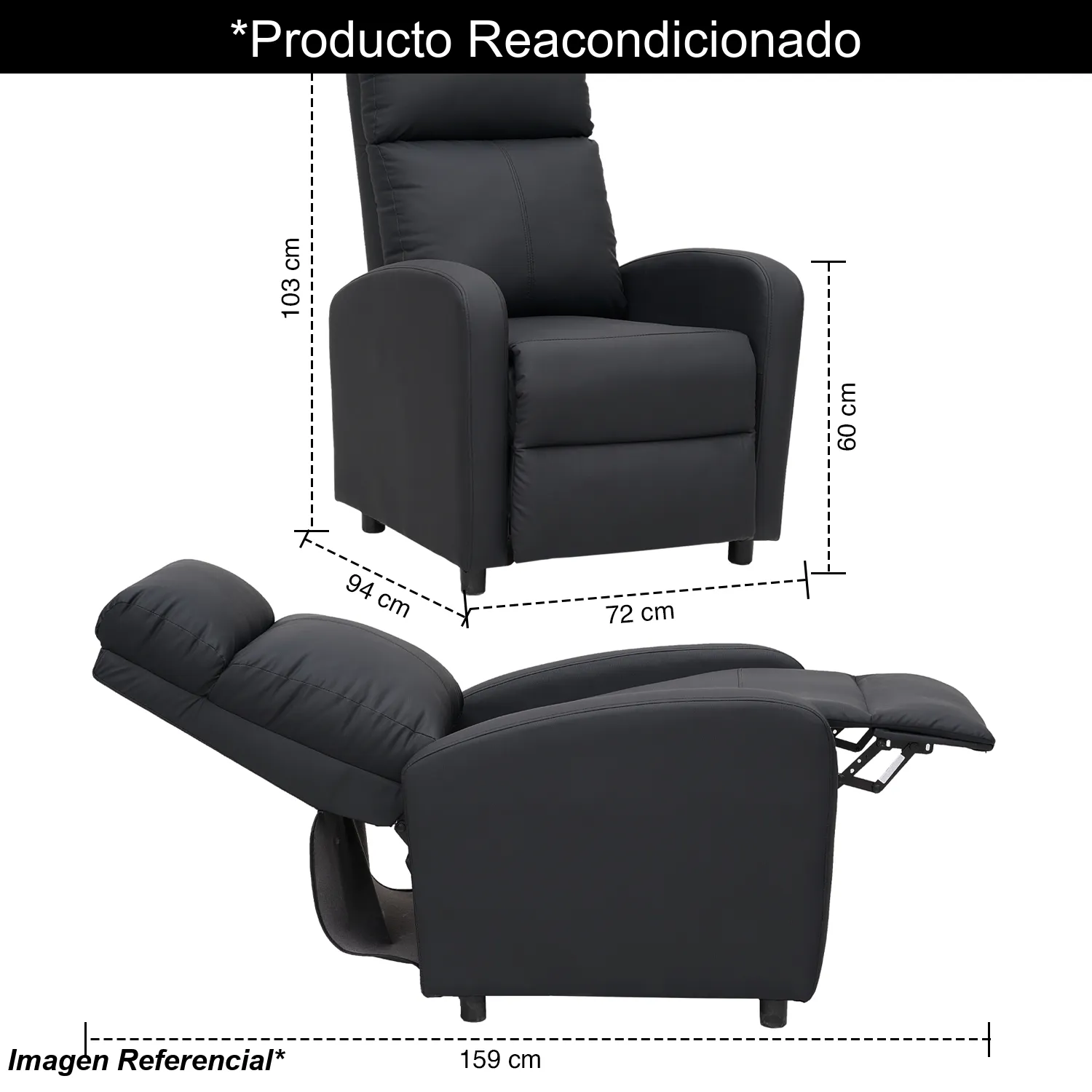 Disfruta de la combinación perfecta entre estilo moderno y confort excepcional con el Berger reclinable Novahus de PU negro Lisboa. Diseñado con un acabado en PU negro de excelente calidad, este sillón no solo aporta un toque de sofisticación a tus espacios, sino que también ofrece resistencia y fácil mantenimiento. Su mecanismo reclinable permite extenderlo hasta los 159 cm, convirtiéndolo en el lugar perfecto para relajarte después de un día agotador.