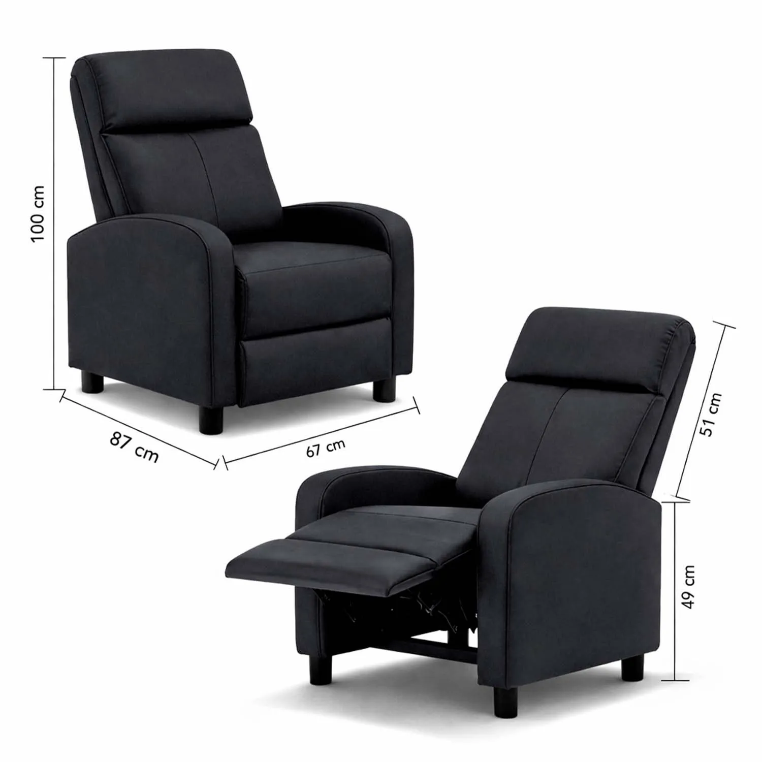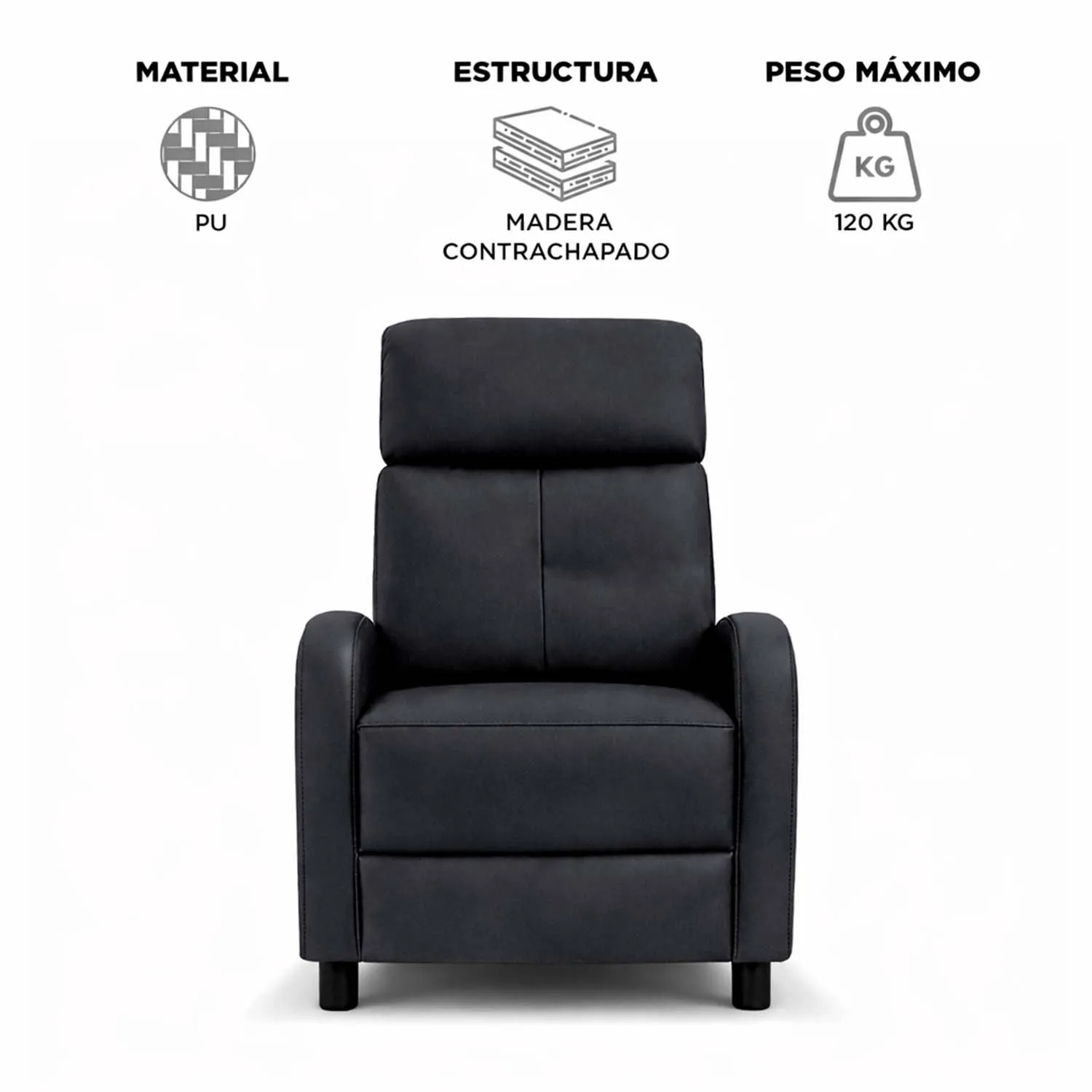 <p>Disfruta de la combinación perfecta entre estilo moderno y confort excepcional con el <strong>Berger reclinable Lisboa en pu negro</strong>. Diseñado con tapizado de pu, este sillón aporta una estética elegante y acogedora a tus espacios, ideal para complementar ambientes contemporáneos y funcionales. Su textura suave y apariencia sobria lo convierten en una excelente opción para quienes buscan comodidad sin sacrificar diseño.</p><p>Con unas dimensiones de 100x67x87 cm, este berger está pensado para ofrecer una experiencia de descanso confortable, manteniendo un formato equilibrado que se adapta fácilmente a distintos espacios del hogar. Su estructura reclinable permite relajarse cómodamente luego de un día intenso, siendo una pieza clave para salas de estar, dormitorios u oficinas.</p><h3>Características:</h3><ul><li><strong>Material:</strong> Tapizado en pu color negro.</li><li><strong>Estructura:</strong> Firme y resistente, pensada para uso diario.</li><li><strong>Diseño reclinable:</strong> Ideal para momentos de descanso y relajación.</li><li><strong>Estilo moderno:</strong> Líneas limpias y diseño versátil que se adapta a distintos estilos decorativos.</li></ul><h3>Beneficios y usos:</h3><ul><li><strong>Versatilidad:</strong> Apto para salas de estar, dormitorios u oficinas.</li><li><strong>Confort diario:</strong> Diseño pensado para brindar comodidad prolongada.</li><li><strong>Estética atemporal:</strong> El tono negro facilita la combinación con otros muebles.</li><li><strong>Funcionalidad:</strong> Mecanismo reclinable que mejora la experiencia de uso.</li></ul><h3>Medidas y peso:</h3><ul><li><strong>Medidas del producto:</strong> 100x67x87 cm.</li><li><strong>Dimensiones del empaque:</strong> 71x69x53 cm.</li><li><strong>Peso neto:</strong> 26 kg.</li><li><strong>Peso bruto:</strong> 27,5 kg.</li></ul>