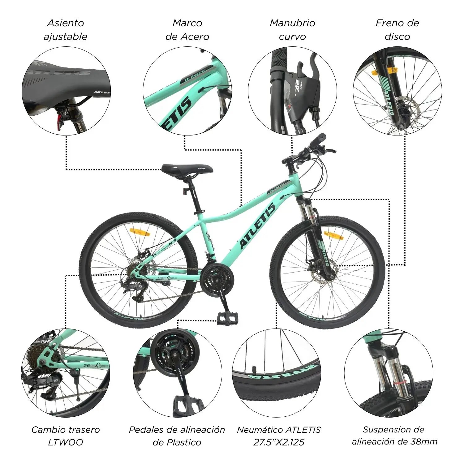 La Bicicleta Mountain Bike Atletis W Force aro 27.5 turquesa es una excelente opción para quienes disfrutan andar en distintos tipos...