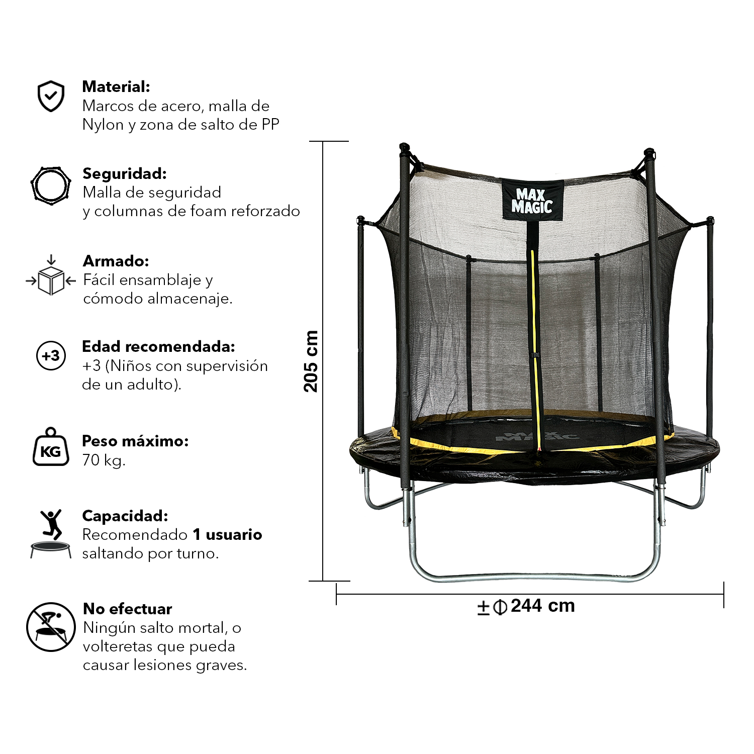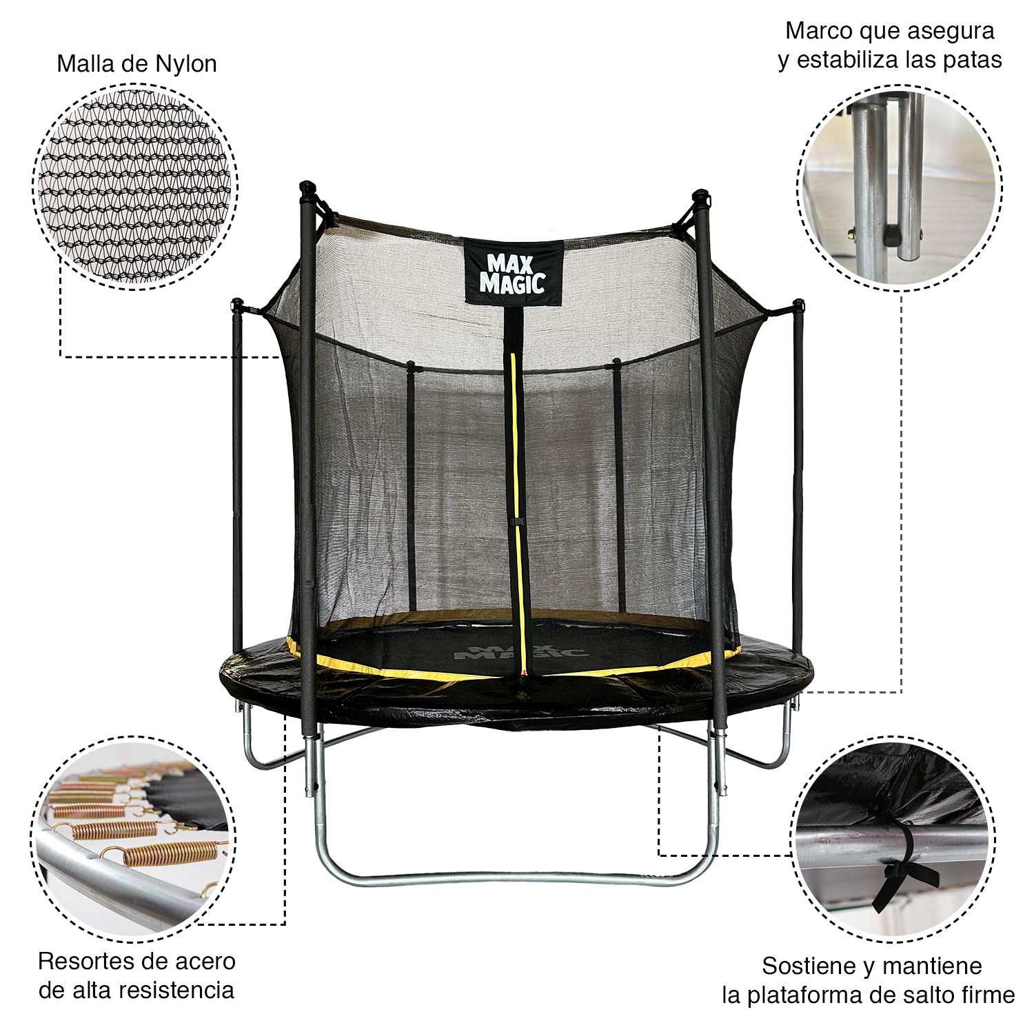 Cama Elástica Max Magic 244cm Negra con Red de Seguridad