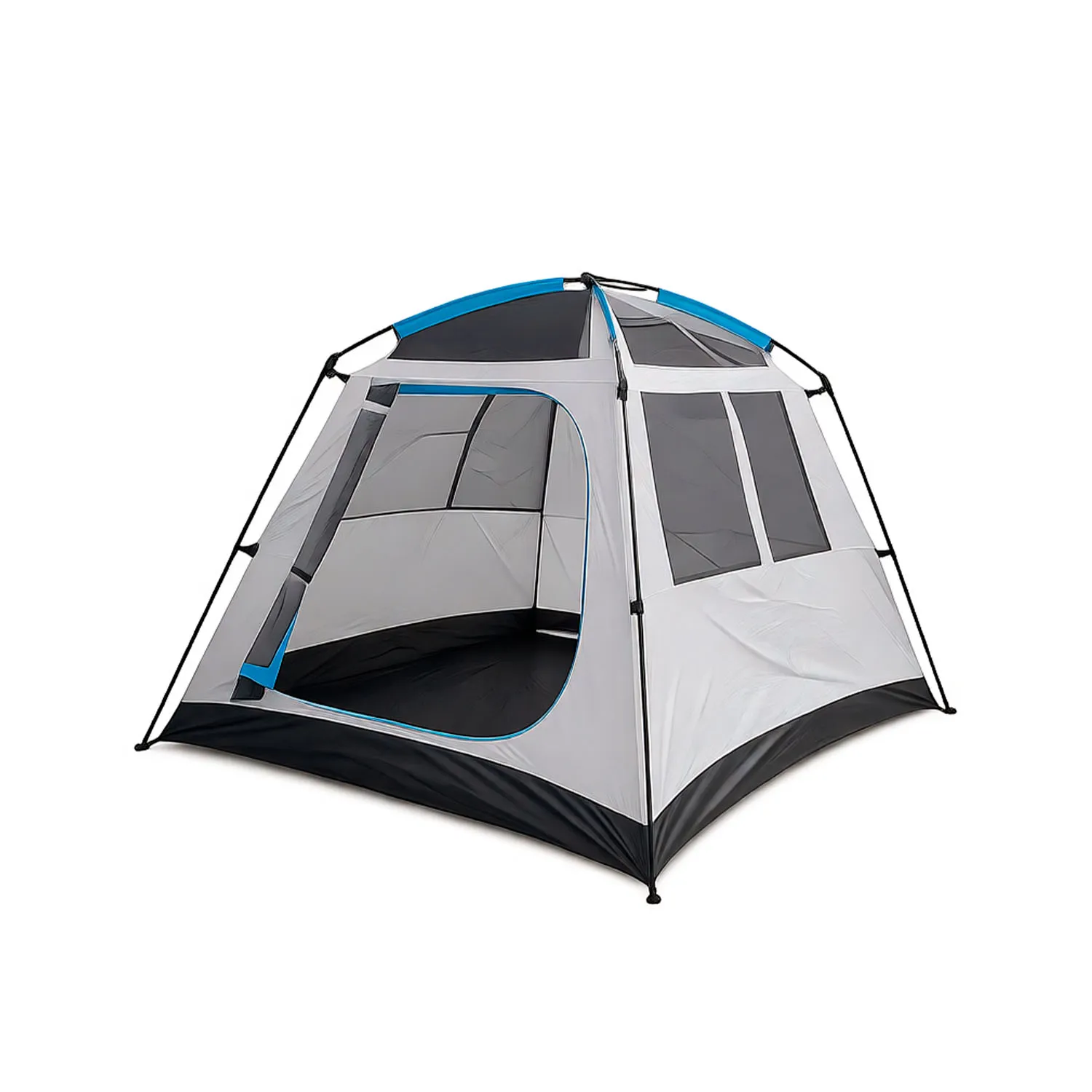 La carpa Yosemite para 6 personas está diseñada para familias o grupos que buscan amplitud, ventilación y protección ante la lluvia. Su techo largo de 3 m, junto con el doble toldo, crea un avance cómodo para cocinar, almacenar equipo o descansar bajo sombra. El cuerpo de poliéster Ripstop 210T PU3000 mm y el piso Oxford 210D PU3000 mm ofrecen impermeabilidad confiable, mientras la estructura de fibra de vidrio + acero asegura firmeza incluso en viento moderado.