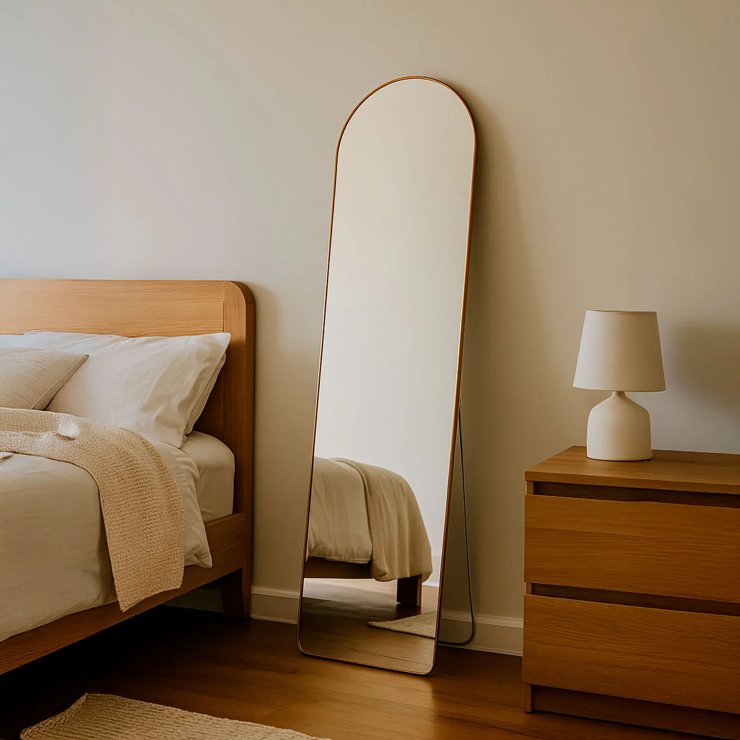 El espejo de pie Inspiracci es una excelente solución para potenciar la decoración y funcionalidad de tus espacios. Puedes ubicarlo junto al clóset, en un vestidor, en el recibidor o en un muro del living para ampliar visualmente el ambiente y aprovechar mejor la luz. Su diseño en semicírculo suaviza las líneas del espacio y se integra muy bien con estilos nórdicos, modernos o clásicos. El marco de aluminio hace que sea fácil de mover y reubicar, mientras el vidrio entrega una reflexión clara para vestirse, maquillarse o coordinar outfits completos. Es un complemento muy práctico para crear rincones más luminosos, acogedores y funcionales.