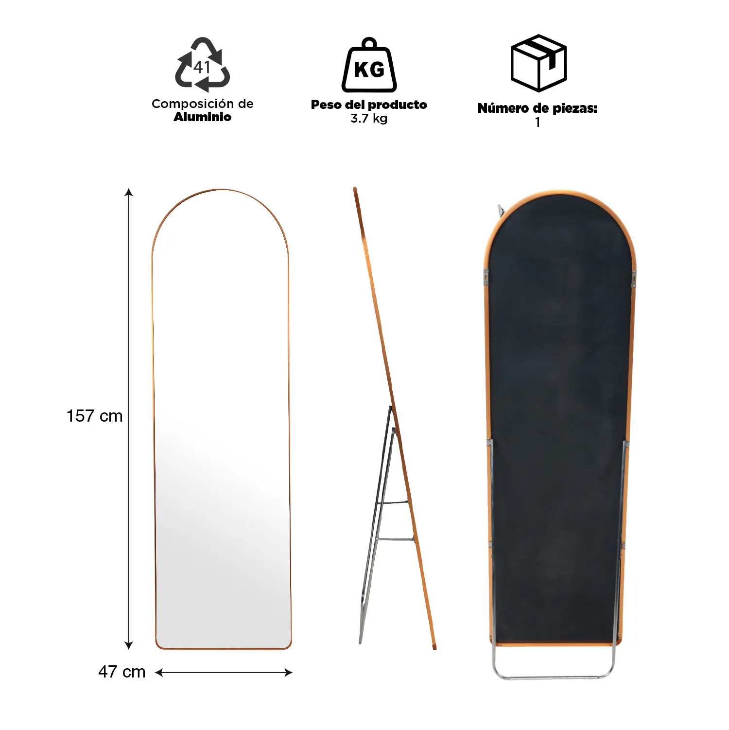 El espejo de pie semicírculo dorado Inspiracci 157×47 cm combina diseño decorativo, formato de cuerpo completo y materiales pensados para el uso diario, convirtiéndose en un aliado perfecto para renovar dormitorios, livings y vestidores con más luz y estilo.