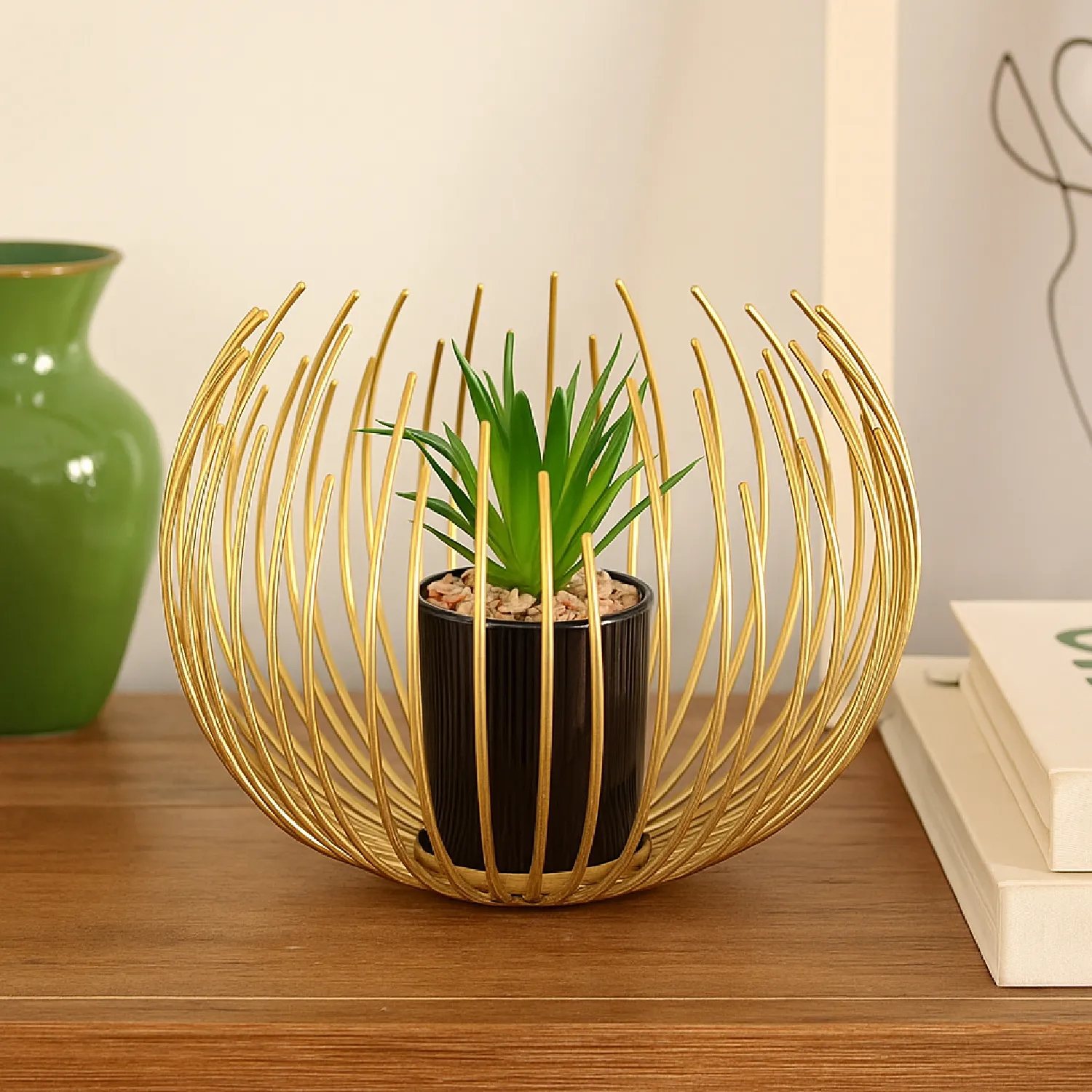 La figura decorativa candelabro esfera con mini planta Inspiracci es un detalle encantador para dar vida y calidez a tus espacios. Combina una estructura de metal con una pequeña planta decorativa en polipropileno y polietileno, logrando un equilibrio entre luz, verde y diseño. Es una figura decorativa perfecta para mesas auxiliares, repisas, veladores o escritorios, aportando un toque acogedor y actual.