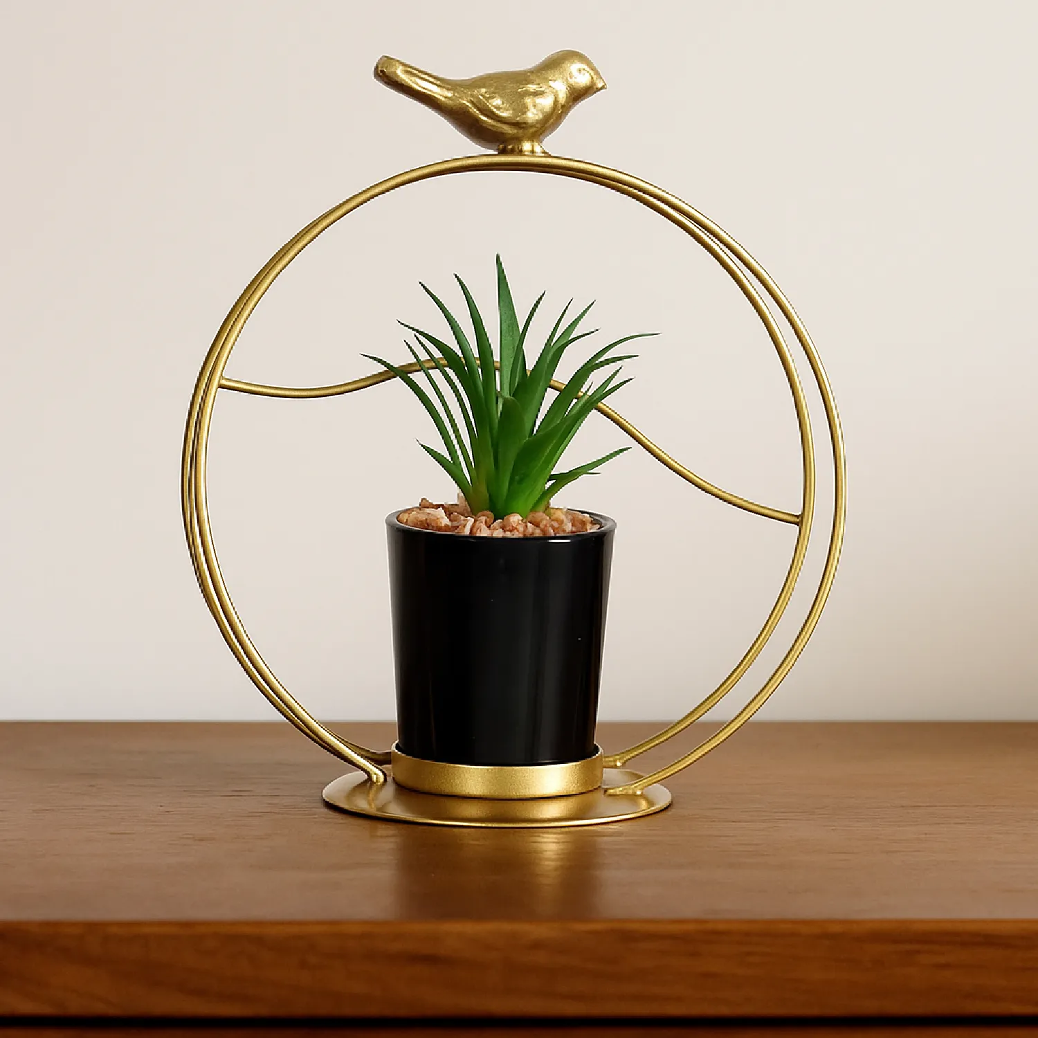 Esta figura decorativa con pajarito permite crear un punto de atención suave y cálido, especialmente cuando se usa con una vela pequeña. Funciona muy bien sobre mesas auxiliares, muebles de entrada o repisas, integrándose tanto en estilos románticos como modernos o boho. La mini planta sintética aporta un toque verde permanente, sin necesidad de riego ni cuidados.