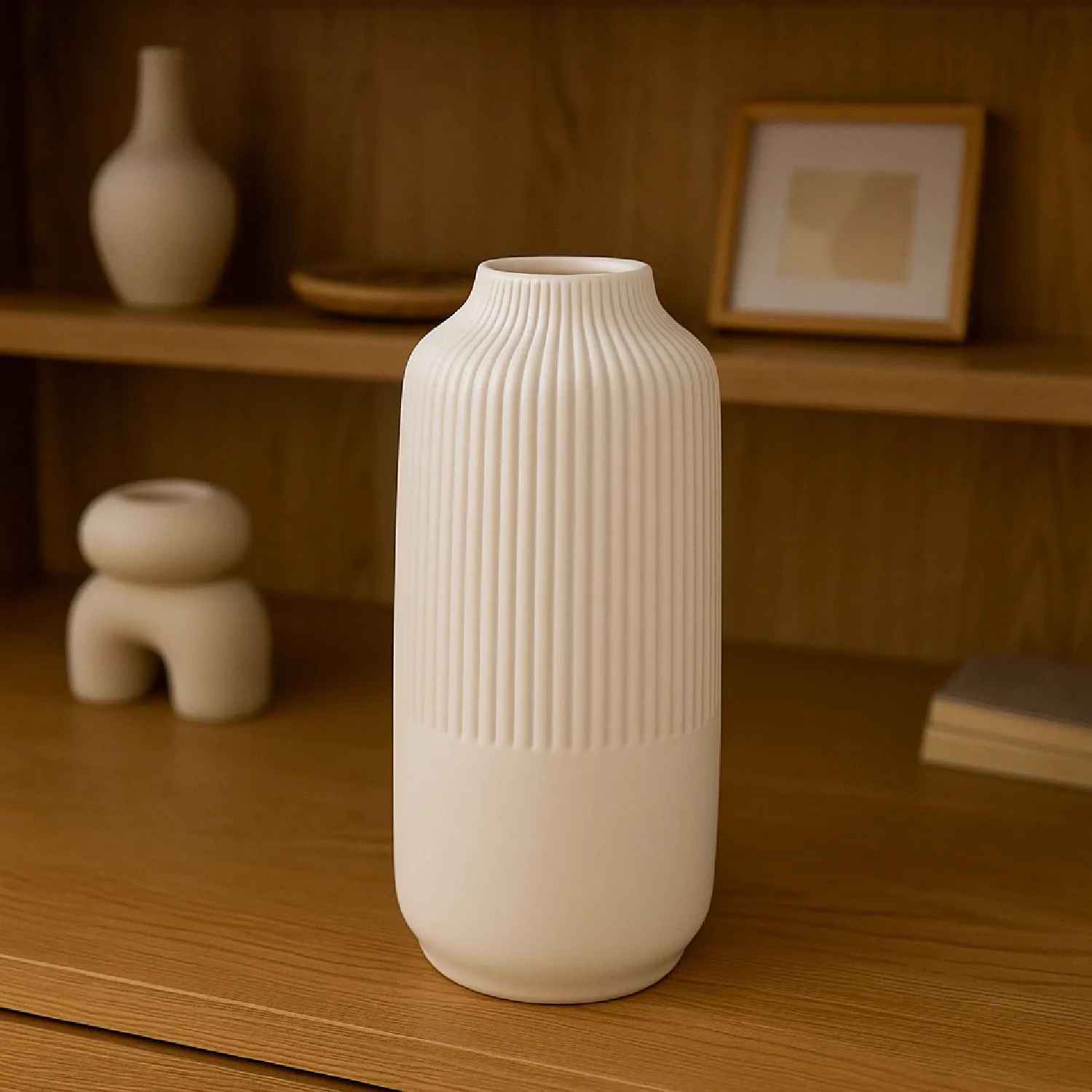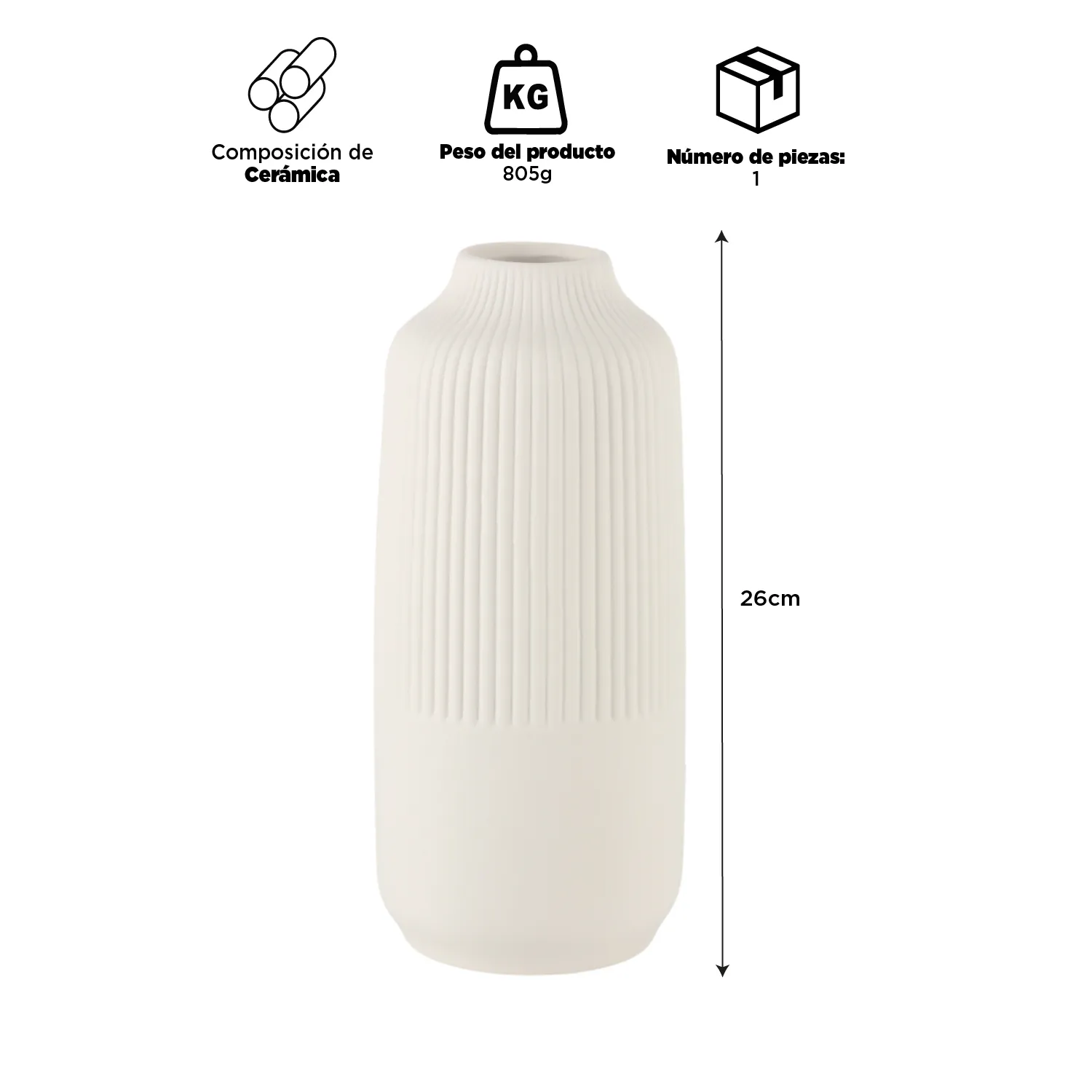 El florero de cerámica blanco Inspiracci 25 cm combina diseño estilizado, acabado neutro y presencia decorativa, convirtiéndose en un accesorio versátil para renovar y completar distintos espacios del hogar con un detalle simple y elegante.