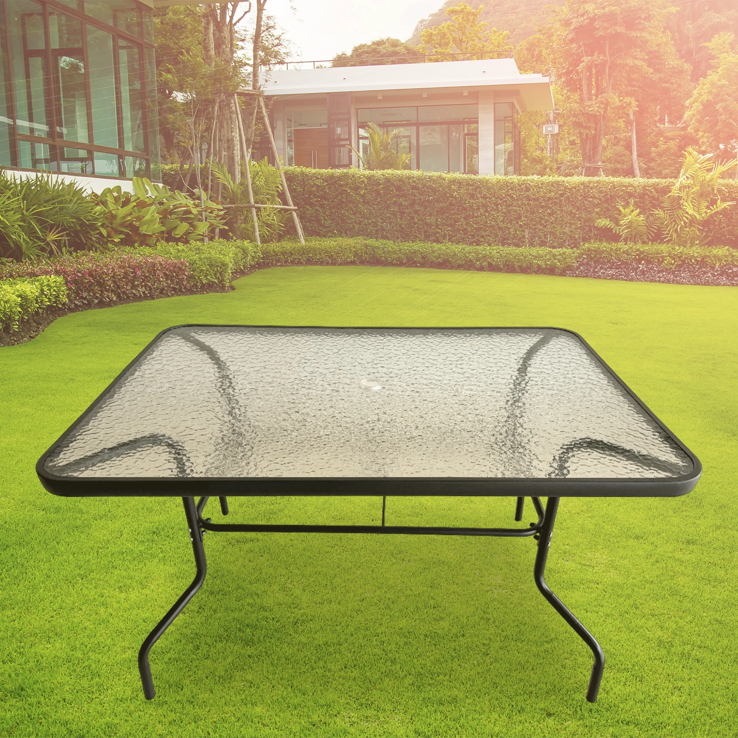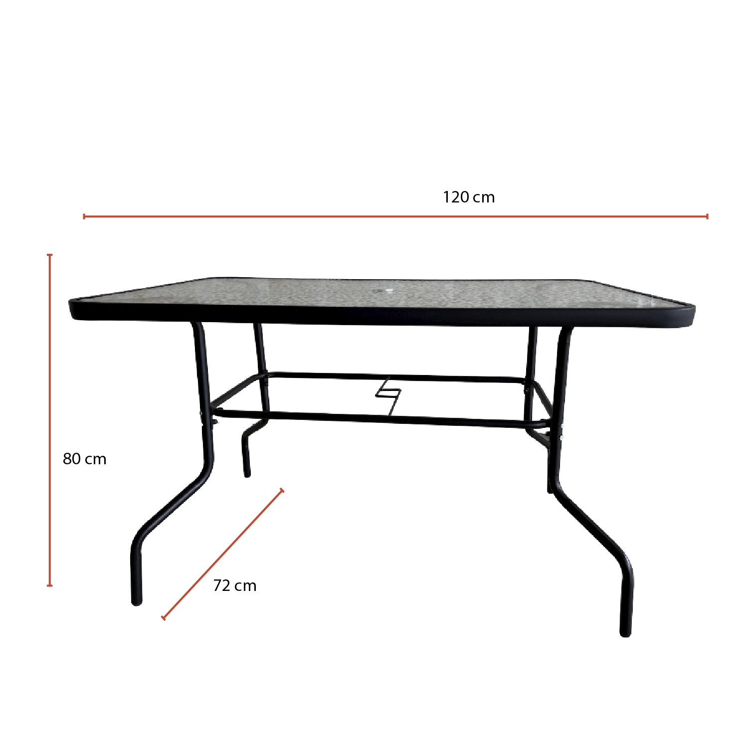 Mesa Terraza Vidrio y Acero 120x80x72cm Negra