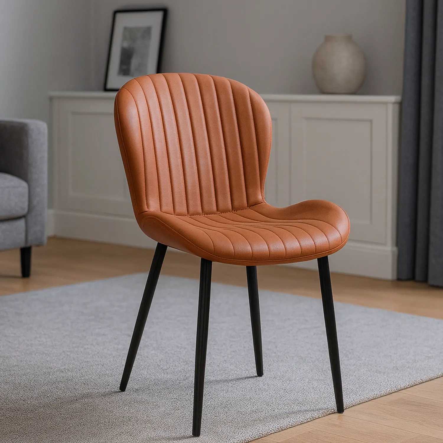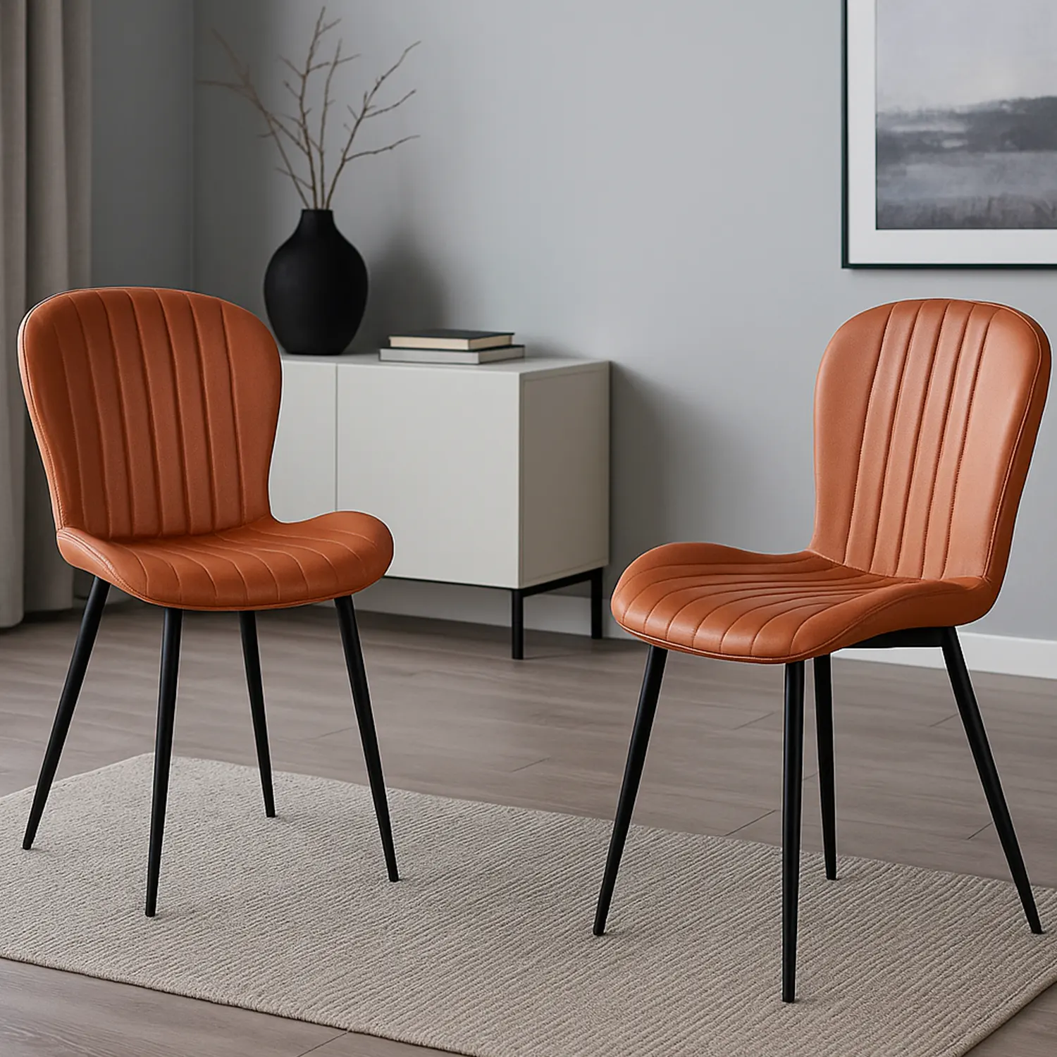 El pack de 2 sillas comedor PU café con patas metálicas combina diseño elegante, comodidad y resistencia, siendo la elección perfecta para quienes desean renovar su espacio con estilo.