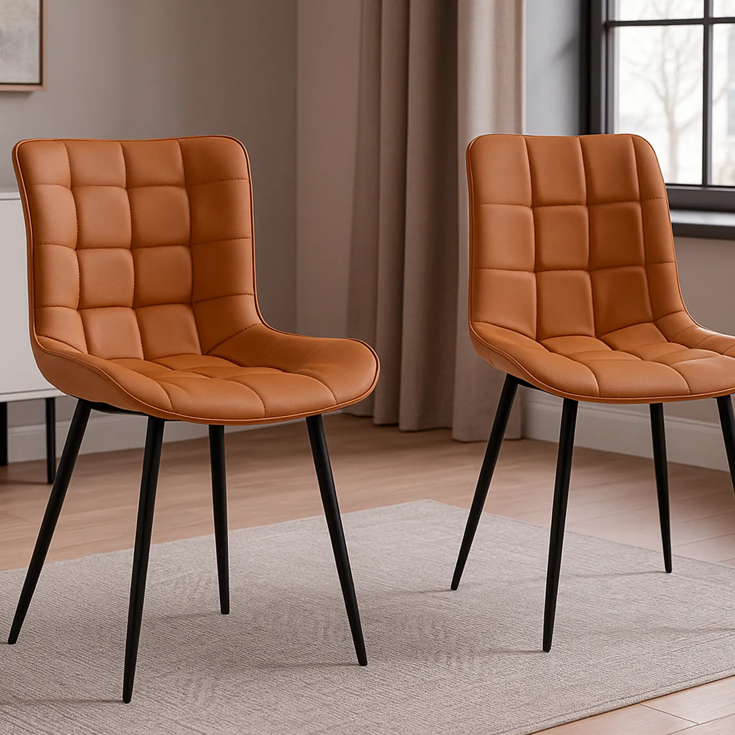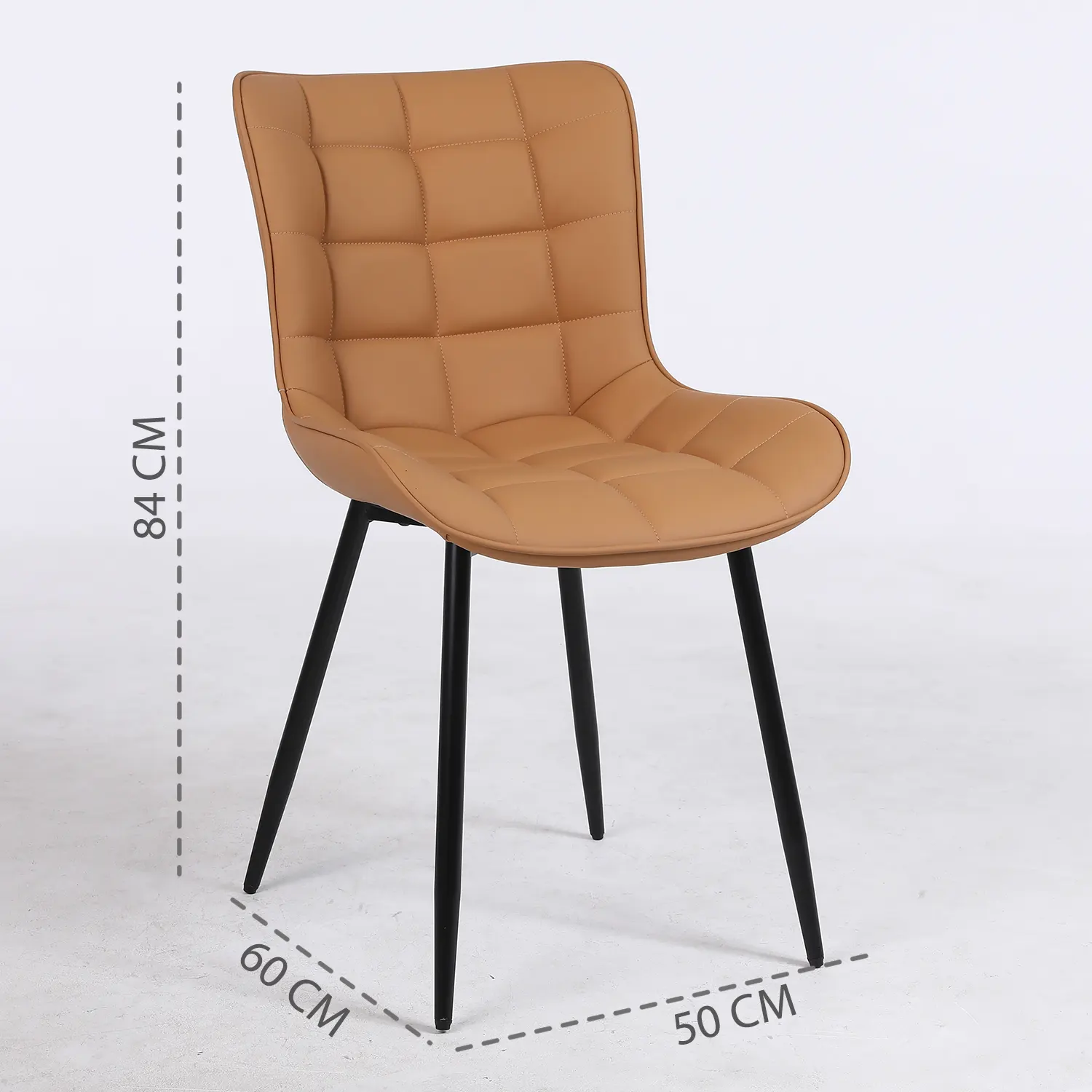 Aporta estilo y comodidad a tu comedor con el pack de 2 sillas comedor camel con patas metálicas, un conjunto diseñado para realzar tus espacios interiores. Su tapiz en PU color camel ofrece un acabado elegante y acogedor, mientras que el relleno de espuma en asiento y respaldo garantiza comodidad durante su uso. Las patas metálicas proporcionan firmeza y estabilidad, logrando un equilibrio perfecto entre diseño y funcionalidad.