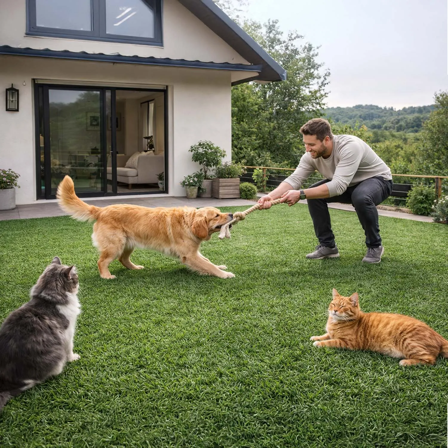 Superficie suave y cómoda, adecuada para caminar descalzo, que disfrutan tanto niños como mascotas.
