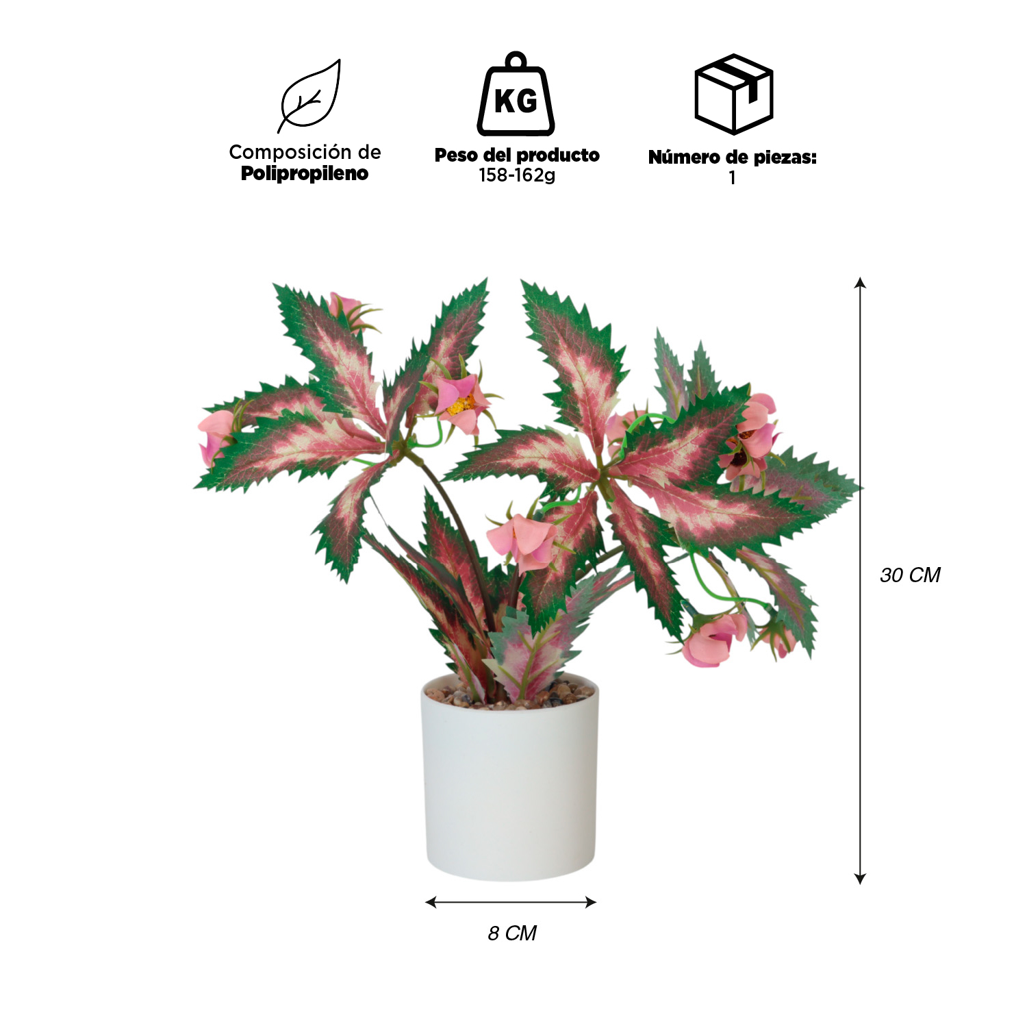 Dale un toque de color permanente a tus espacios con la planta artificial Begonia Inspiracci, una forma rápida de transformar repisas,...