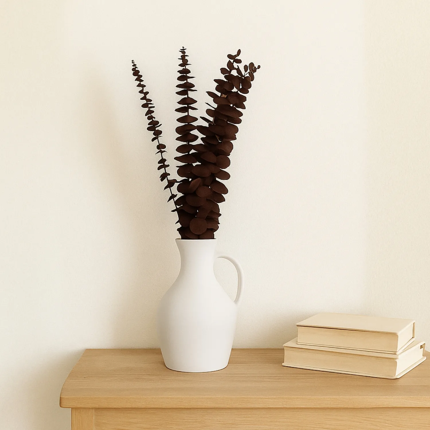 La rama decorativa natural burdeo Inspiracci suma un acento burdeo elegante a tus composiciones florales. Su tono profundo contrasta con jarrones claros y maderas, realzando mesas y repisas.
