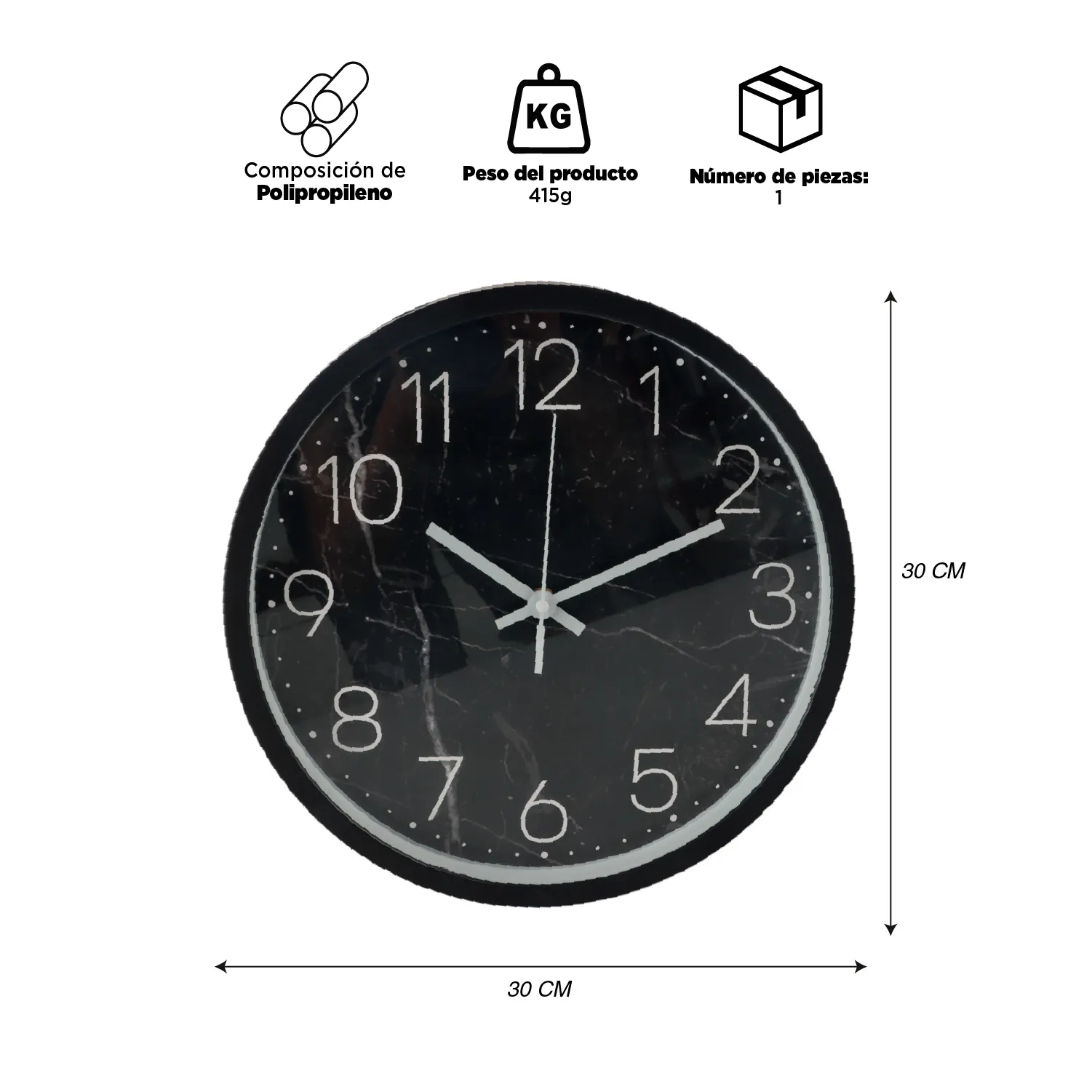 El reloj decorativo de pared clásico negro Inspiracci 30 cm combina un diseño atemporal, lectura clara de la hora y un color que contrasta muy bien con distintos fondos, transformándose en un accesorio funcional y decorativo para múltiples ambientes.