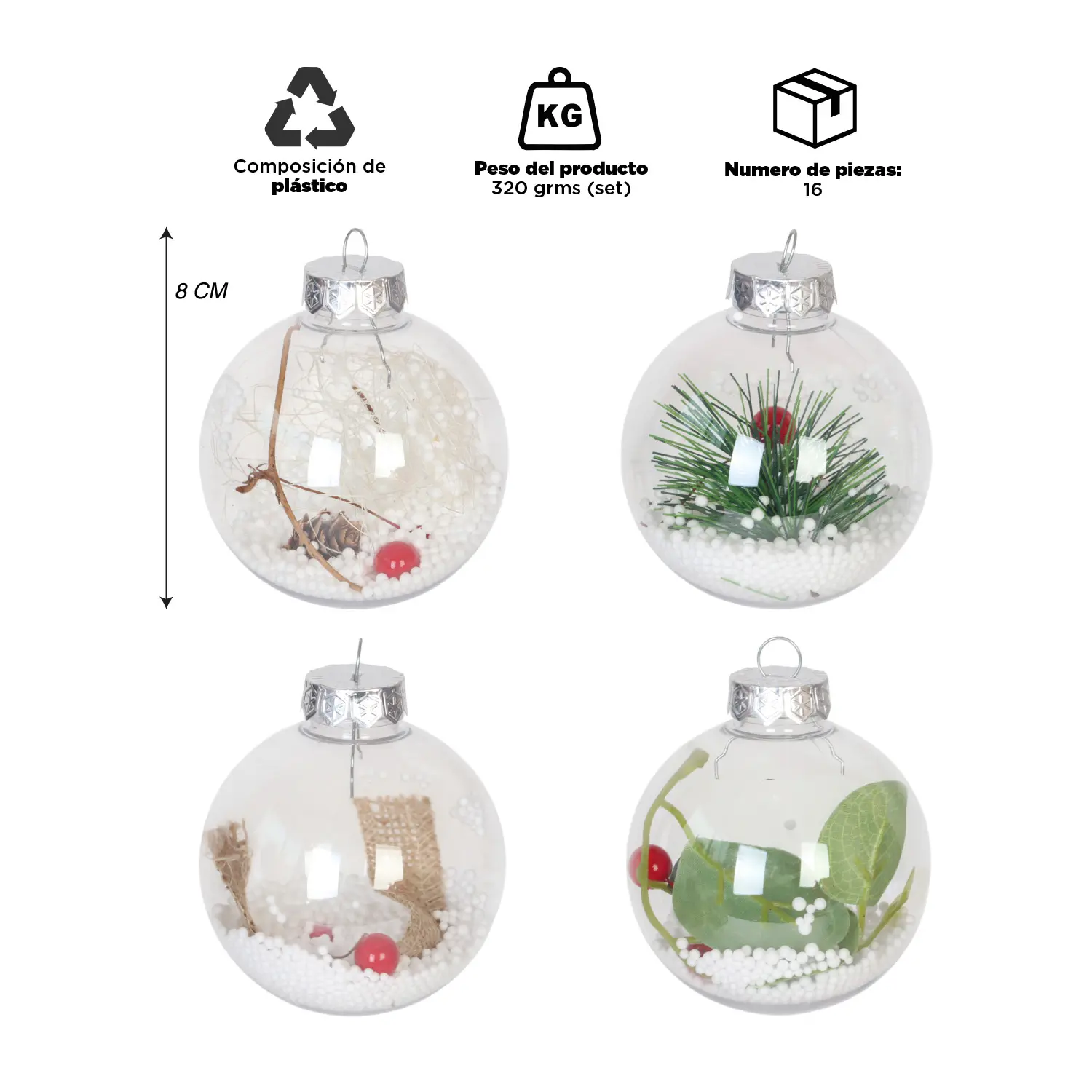 Combina diferentes tonos y tamaños para lograr un estilo equilibrado y sofisticado. Estas esferas son ligeras, resistentes y fáciles de colgar, ideales para decorar árboles, coronas o centros de mesa. Aportan ese toque clásico que nunca pasa de moda, evocando recuerdos y emociones familiares.