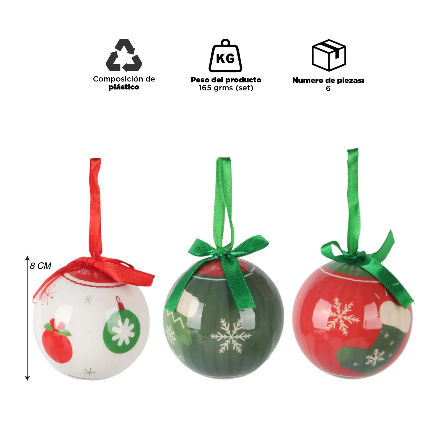 Combina diferentes tonos y tamaños para lograr un estilo equilibrado y sofisticado. Estas esferas son ligeras, resistentes y fáciles de colgar, ideales para decorar árboles, coronas o centros de mesa. Aportan ese toque clásico que nunca pasa de moda, evocando recuerdos y emociones familiares.
