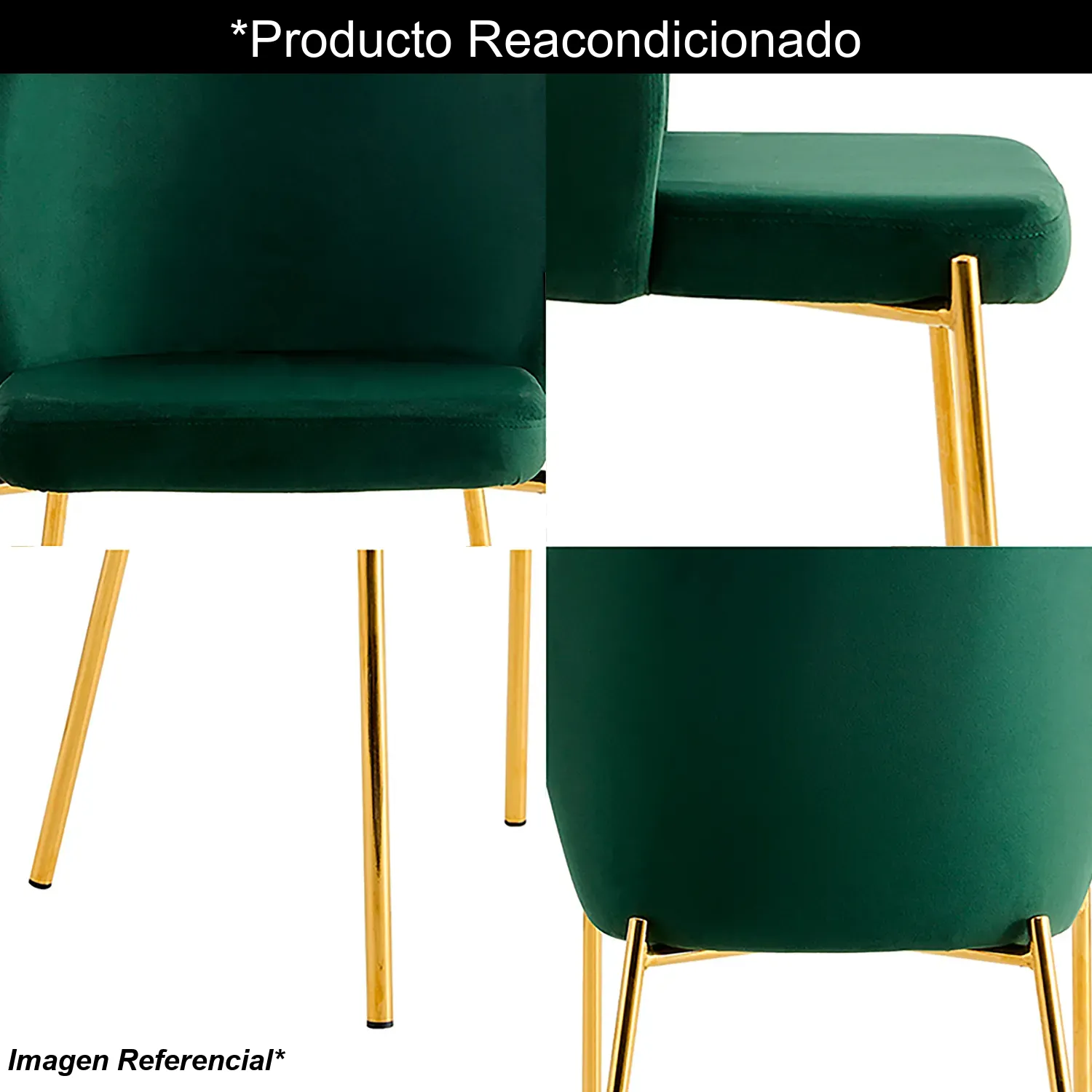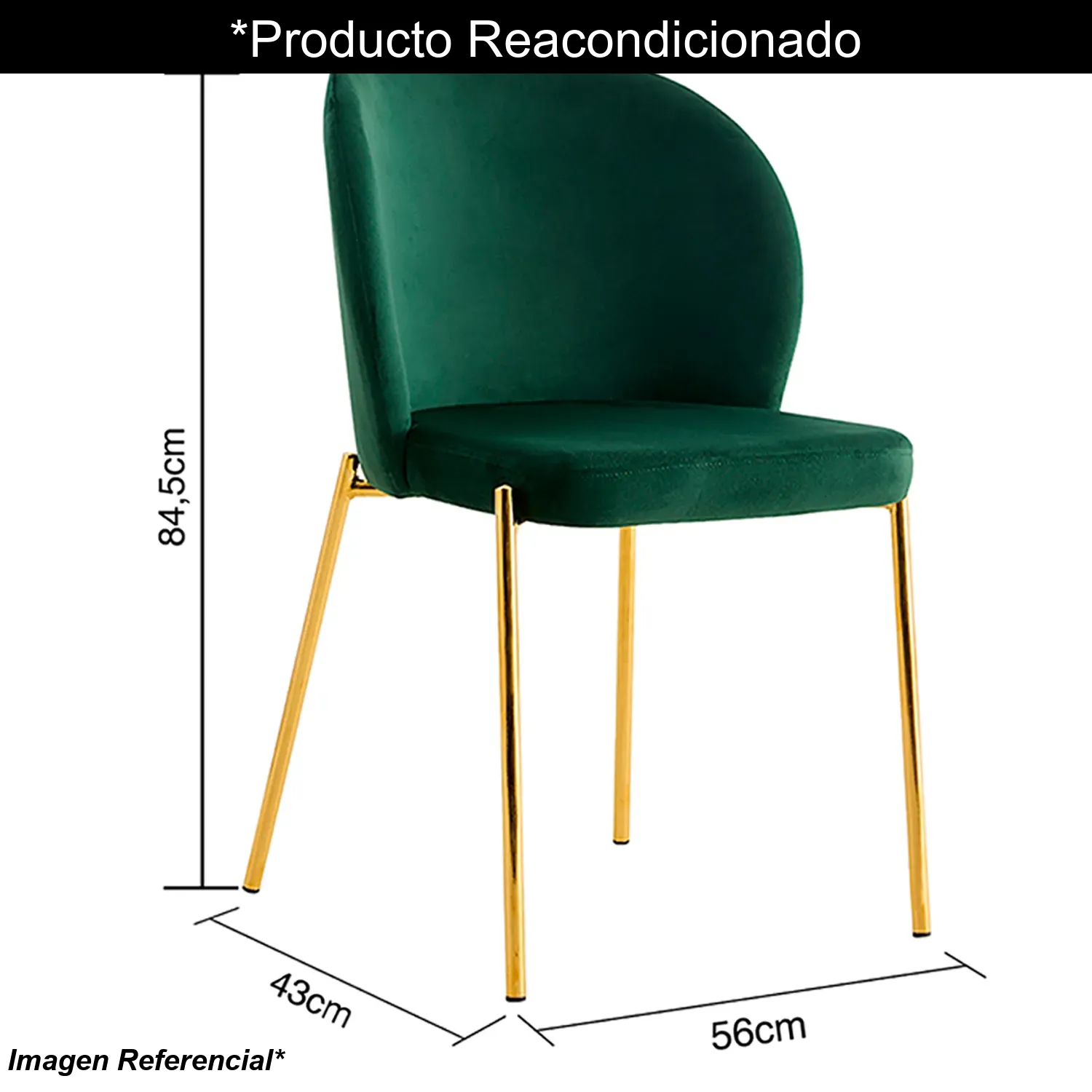 Hermosa silla de comedor para complementar tu mesa o renovar tu comedor, puedes colocarla en tu living como sitial, o como punto de reuniones y encuentros, acolchada y muy cómoda lo que la hace ideal para pasar largos y agradables momentos a la hora del té. Esta fantástica silla esta tapizada con suave tela de terciopelo, la estructura es de metal, por lo que es duradera.