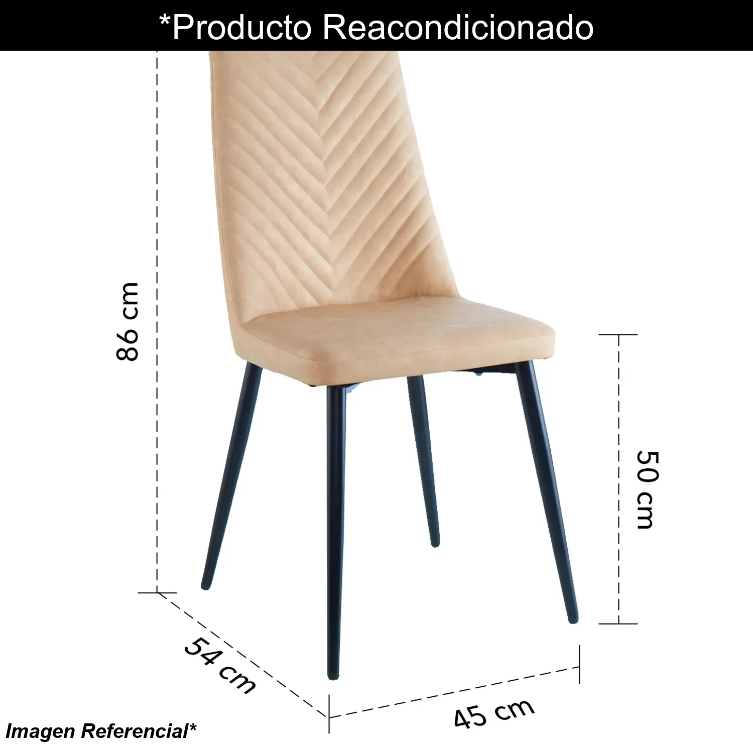 Elegante silla de comedor ideal para los amantes de los estilos minimalista y clásico por su diseño sobrio y estilizado, cuenta con un asiento acolchado que amortigua el peso del cuerpo, el respaldo tiene una curva para el correcto reposo de la espalda y para adoptar una buena postura, sus patas de metal son estables y resistentes, esta es una excelente opción para renovar tu comedor y compartir momentos largos, agradables, con mucho confort y estilo.