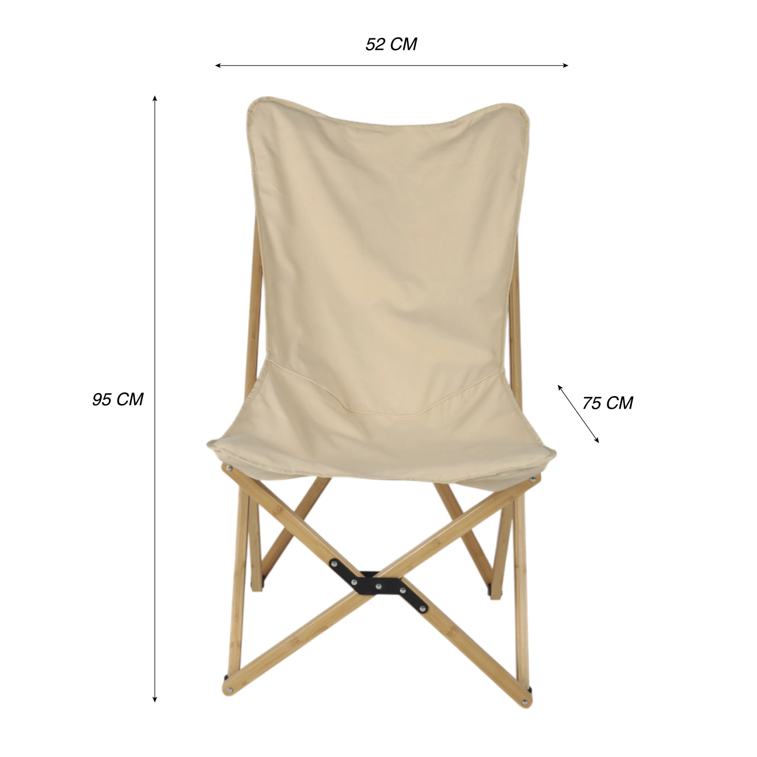 La Silla Plegable Camping Ranco beige está diseñada para quienes buscan un asiento práctico, resistente y con estilo natural en sus actividades al aire libre. Su estructura de bambú le da firmeza y durabilidad, mientras que la tela de lona en color beige aporta comodidad y un look elegante. Perfecta para primavera, verano y otoño, es una gran opción para camping, terrazas, playa, picnics o salidas familiares.