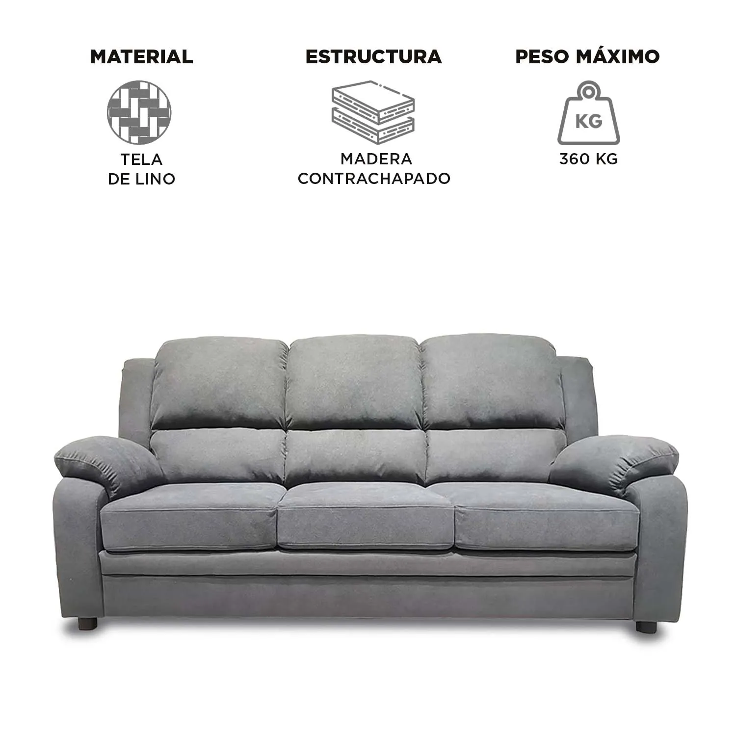 Sofá 3 Cuerpos Sevilla Lino Gris