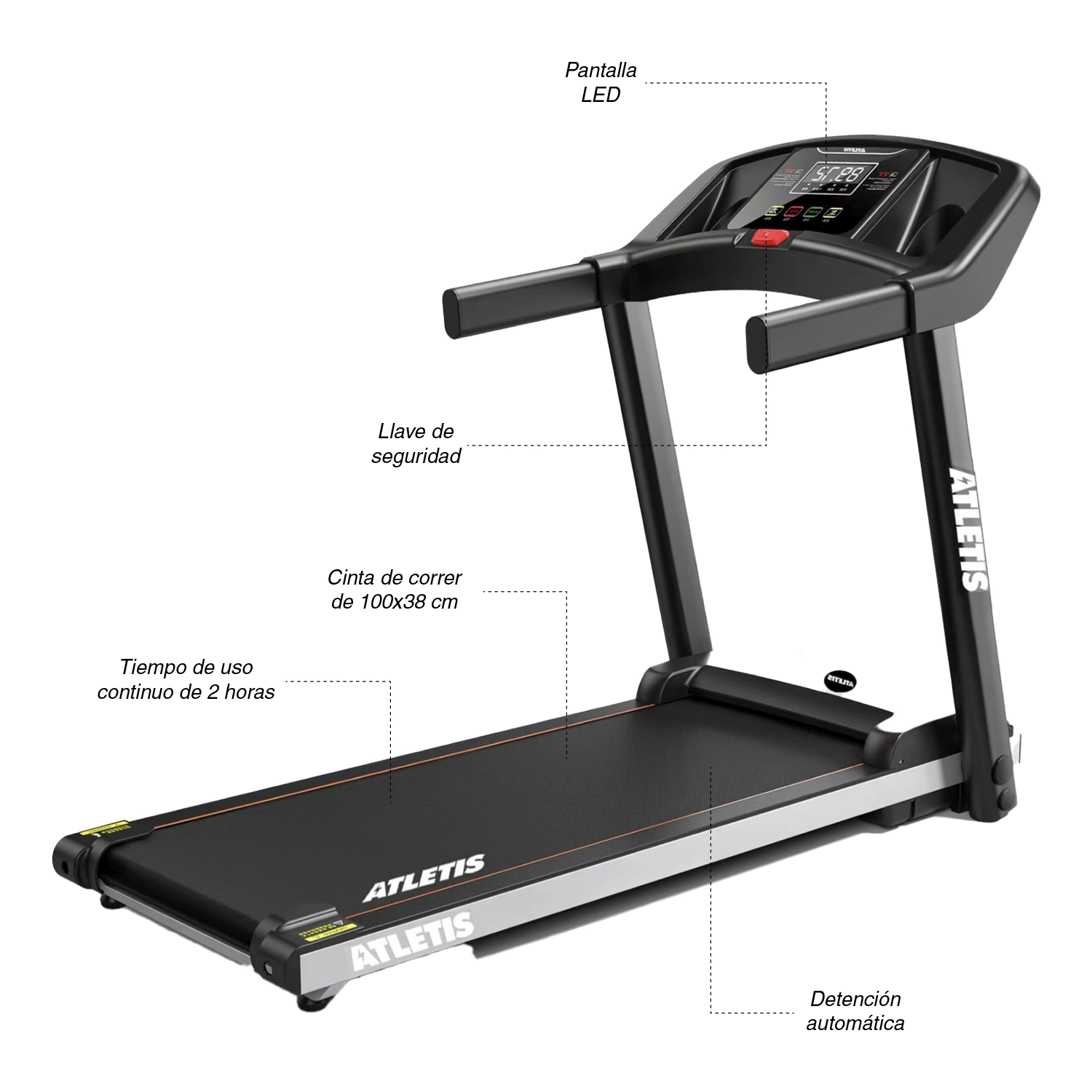 Construida en acero y plástico resistente, soporta hasta 80 kg de usuario e incorpora un sistema de amortiguación que reduce el impacto en articulaciones. Su pantalla LED de 2.5” muestra en tiempo real el tiempo, la distancia, la velocidad y las calorías. Además, incluye 12 programas automáticos y 3 modos de cuenta regresiva para personalizar tus entrenamientos y mantener la motivación.