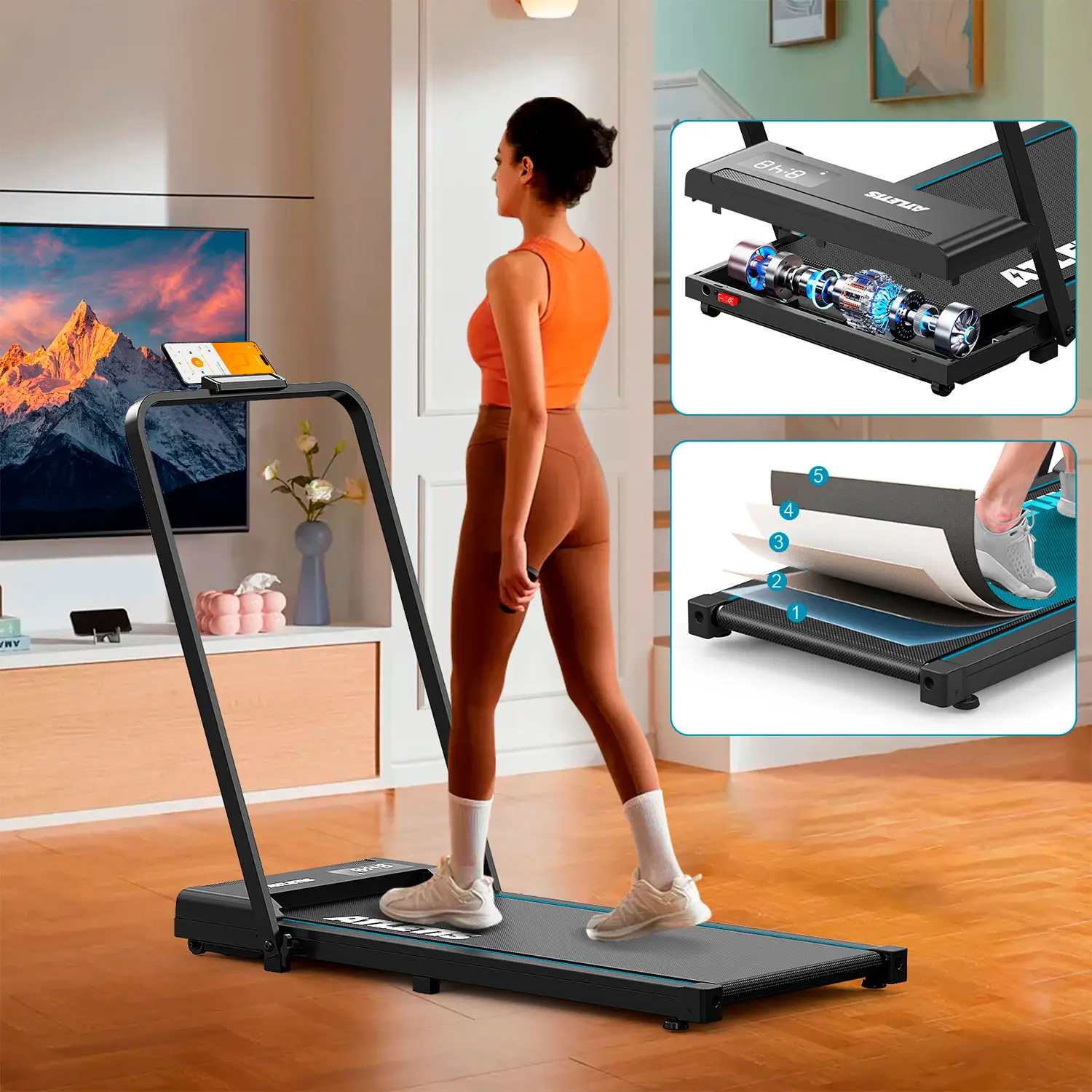 La pantalla LED de 13,7 x 6,4 cm muestra datos clave como velocidad, tiempo, distancia y calorías, ayudándote a seguir tu progreso en tiempo real. Además, su diseño plegable y ruedas de transporte permiten guardarla fácilmente en espacios reducidos.
