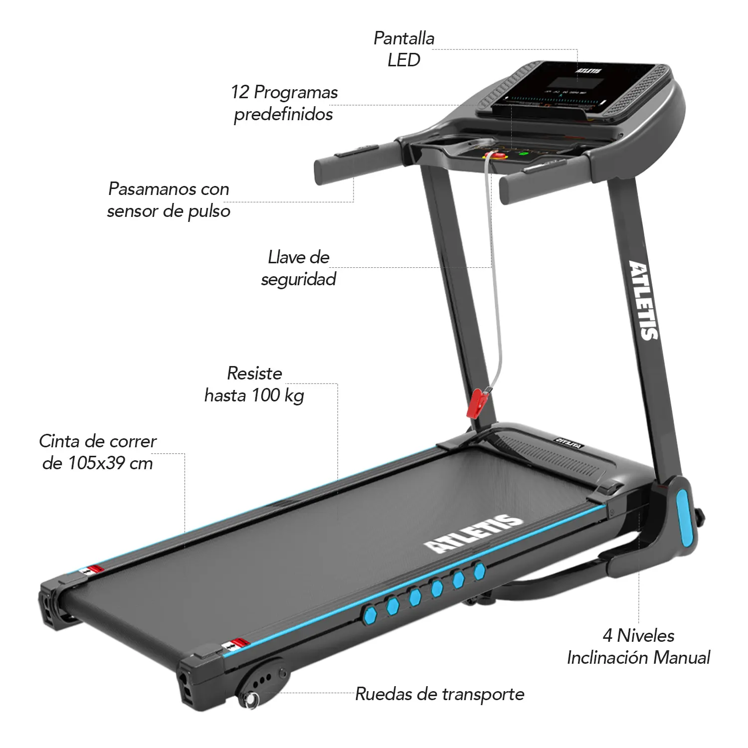 • Área de trote: 39×105 cm